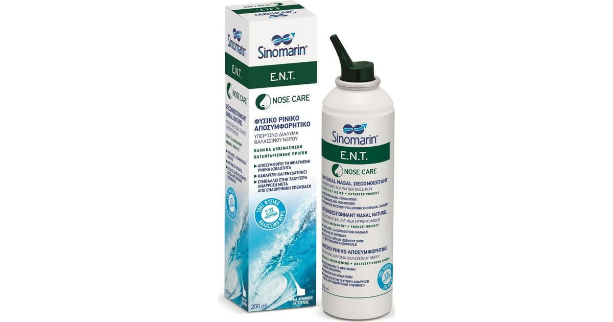 To Sinomarin® ENT είναι ένα 100% φυσικό, κλινικά δοκιμασμένο ρινικό αποσυμφορητικό. Είναι υπέρτονο διάλυμα θαλασσινού νερού (2,3% σε NaCl) πλούσιο σε όλα τα ευεργετικά συστατικά της θάλασσας (μεταλλικά άλατα & ιχνοστοιχεία). To Sinomarin® ENT είναι ιδανικό για ρινικές πλύσεις σε περιπτώσεις παχύρρευστων ή/και πυωδών ρινικών εκκρίσεων, καθώς και µετά από ενδορρινική χειρουργική επέµβαση.Αποσυµφορεί και καθαρίζει διεξοδικά τις ρινικές κοιλότητες, συµβάλλει στην ταχύτερη ανάρρωση και προφυλλάσει από τυχόν µετεγχειρητικές λοιµώξεις και επιπλοκές.