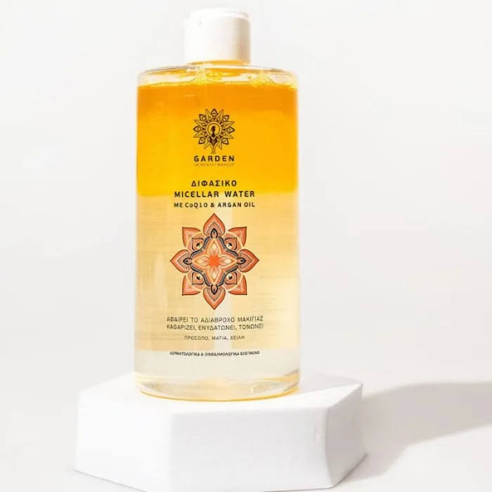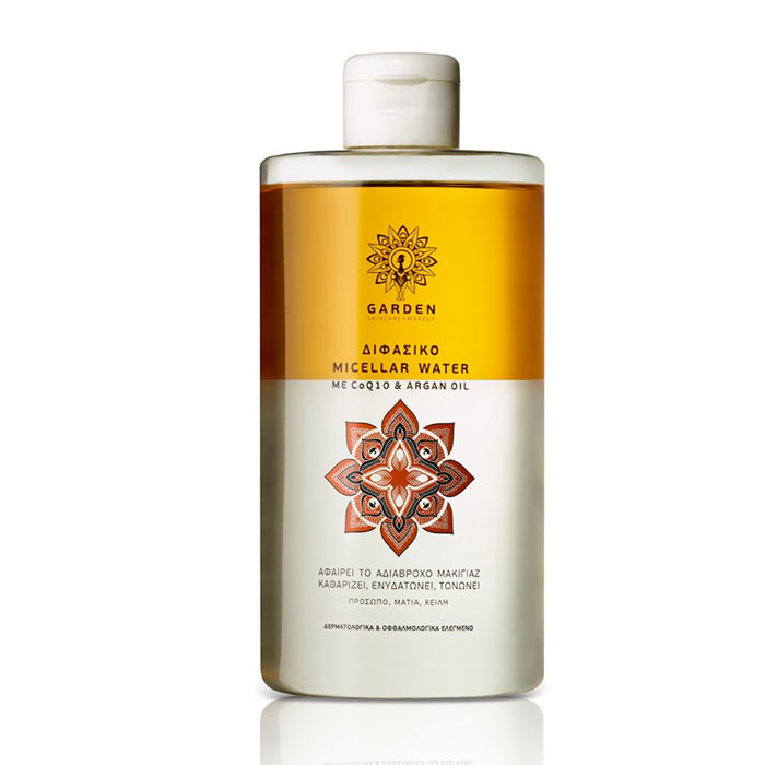 Διφασικό μικυλλιακό νερό ντεμακιγιάζ με συνένζυμο Q10 και έλαια αργκάν και jojoba. Αφαιρεί αποτελεσματικά αδιάβροχο μακιγιάζ και ρύπους από πρόσωπο, μάτια και χείλη, χωρίς να αφήνει λιπαρότητα. Ειδικά σχεδιασμένη φόρμουλα με δραστικά συστατικά, που προσφέρουν ενυδάτωση και αντιοξειδωτική προστασία.