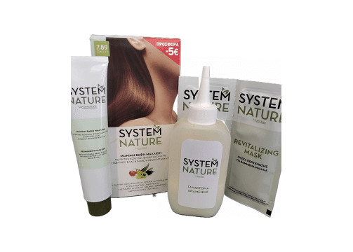 Η νέα μόνιμη βαφή μαλλιών SYSTEM NATURE, με Φυτική Κερατίνη, Φυσικό εκχύλισμα Σταφυλιού, Ελιάς και Ινδικού Φραγκοστάφυλου, χαρίζει 100% κάλυψη λευκών και γκρίζων μαλλιών, ομοιόμορφο χρώμα με μεγάλη διάρκεια, προστασία και φυσική λάμψη.