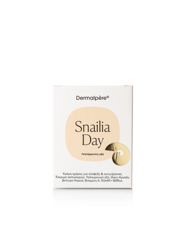 Κρέμα ημέρας, λεπτόρευστης υφής με έκκριμα σαλιγκαριού, υαλουρονικό οξύ, έλαιο argan, βούτυρο καριτέ και βιταμίνη Α.