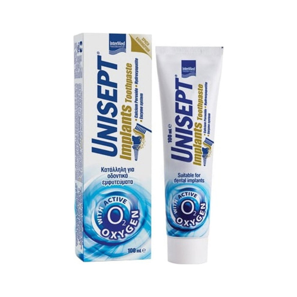 Η οδοντόκρεμα Unisept Implants της Intermed προορίζεται για καθημερινή χρήση από άτομα με οδοντικά εμφυτεύματα και βοηθά στην καθαριότητα της περιοχής γύρω από τα εμφυτεύματα ενώ ταυτόχρονα έχει αντιμικροβιακή δράση.