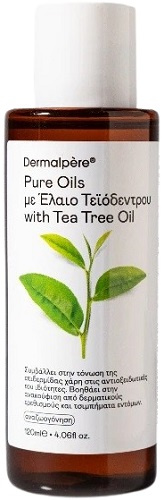 Σκεύασμα με 100% βιολογικό έλαιο τεϊόδεντρου (tea tree oil) από τη σειρά Pure Oils της Dermalpere, συστατικό ιδιαίτερα πλούσιο σε λιπαρά οξέα (Ωμέγα-3, Ωμέγα-6 και Ωμέγα-9) και βιταμίνη Ε, το οποίο χρησιμοποιείται τοπικά ως αντισηπτικό για κοψίματα, εκδορές, ακμή και εγκαύματα, ενώ ανακουφίζει από τα τσιμπήματα των εντόμων.