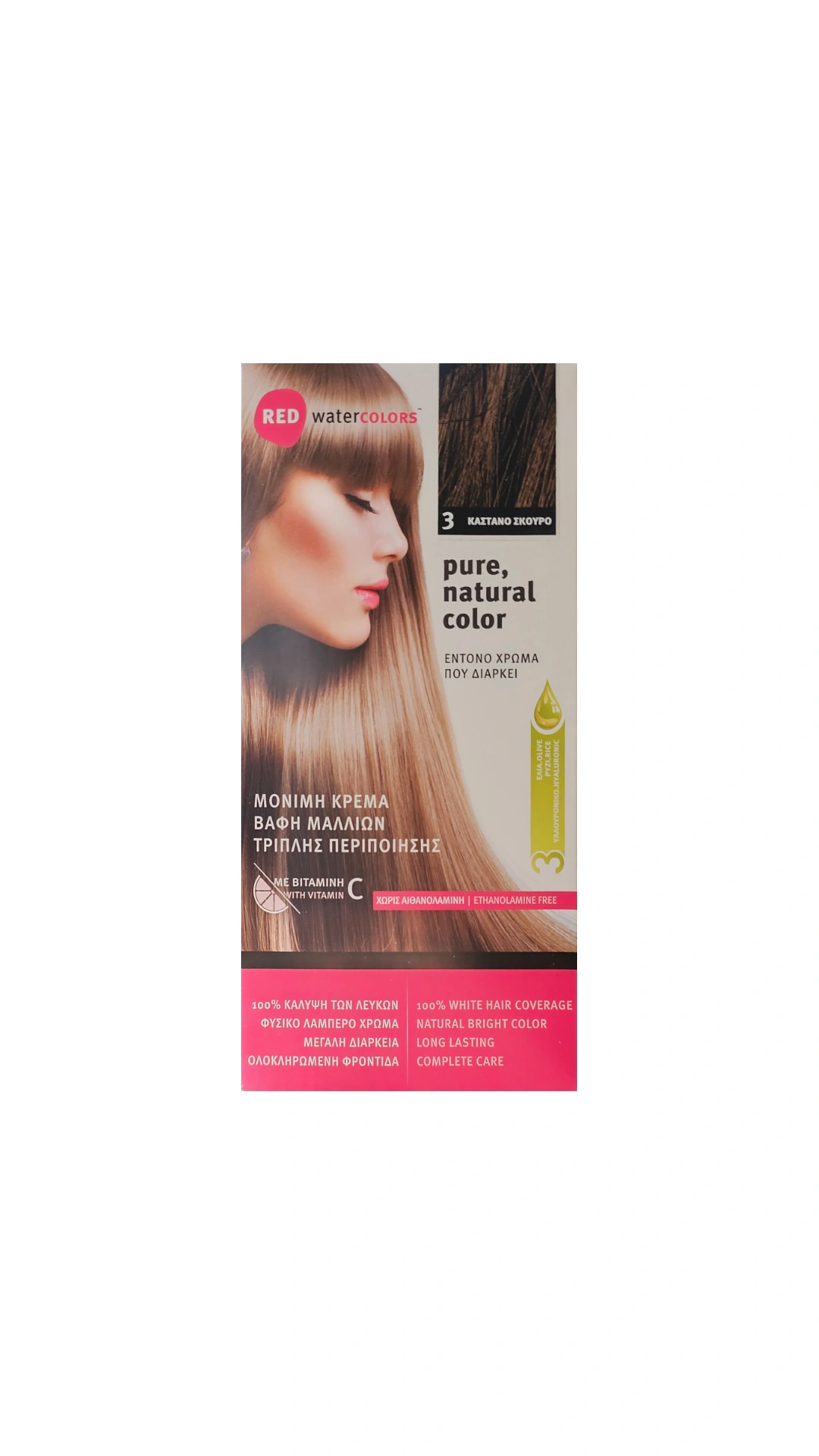 Ερευνήσαμε, μελετήσαμε και δημιουργήσαμε μια σειρά μόνιμης κρέμας βαφής μαλλιών αλλά και φροντίδας των βαμμένων μαλλιών, εμπλουτισμένη με φυτικά εκχυλίσματα πιστοποιημένης βιολογικής καλλιέργειας και σας προσφέρουμε μία σειρά που θα φροντίσει τόσο την εξωτερική ομορφιά όσο και την εσωτερική υγεία των μαλλιών σας.Οι 35 υπέροχες αποχρώσεις της REDwater™ COLORS που θα βρείτε σε συσκευασία ολοκληρωμένου Set ή σε Professional συσκευασία, θα εξασφαλίσουν το καλύτερο χρωματικό αποτέλεσμα, χαρίζοντας ομοιόμορφο, έντονο και σταθερό χρώμα. Η μοναδική, σύγχρονη φόρμουλα της βαφής, συνδυάζει αποτελεσματικά όλα τα προσεκτικά επιλεγμένα συστατικά της. Εισχωρεί βαθιά στην τρίχα, και τα χρωμομόρια υψηλής αποτελεσματικότητας προσφέρουν ζωντάνια και λάμψη στα μαλλιά.φροντίσει τόσο την εξωτερική ομορφιά όσο και την εσωτερική υγεία των μαλλιών σας.