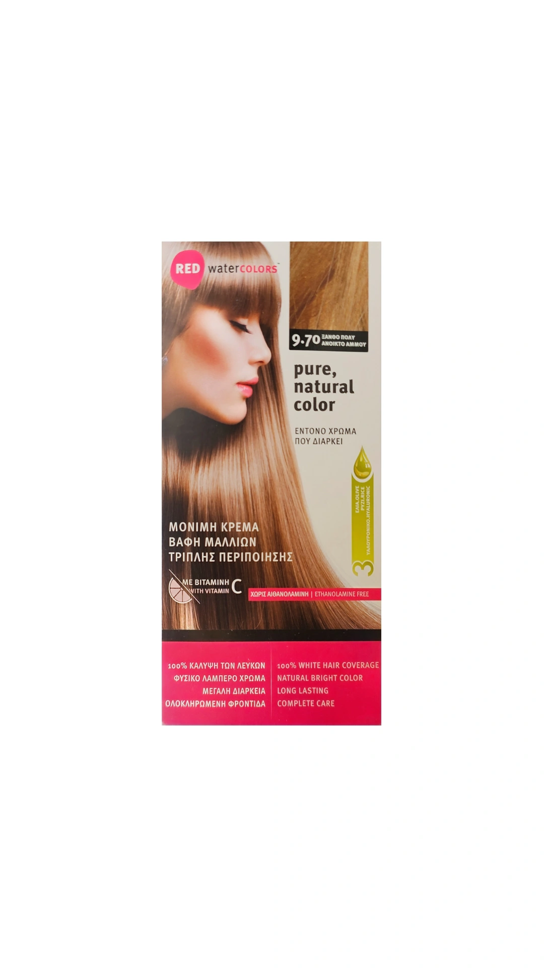 Η Red Water COLORS έχει σχεδιαστεί για να εξασφαλίσει το καλύτερο χρωματικό αποτέλεσμα και ταυτόχρονη φροντίδα στα μαλλιά σας.Η Μόνιμη Κρέμα Βαφής Μαλλιών, περιποιείται τα μαλλιά καθώς τα βάφει, χαρίζοντας πλούσιο και έντονο χρώμα, καλύπτοντας 100% τα λευκά.Το Σαμπουάν Σταθεροποίησης Χρώματος επαναφέρει τη φυσική ισορροπία των μαλλιών και προστατεύει το χρώμα μέχρι την επόμενη βαφή.Η Ενυδατική Μάσκα Επανόρθωσης ενυδατώνει, θρέφει και ολοκληρώνει τη φροντίδα των μαλλιών αφήνοντάς τα μαλακά, υγιή και λαμπερά.