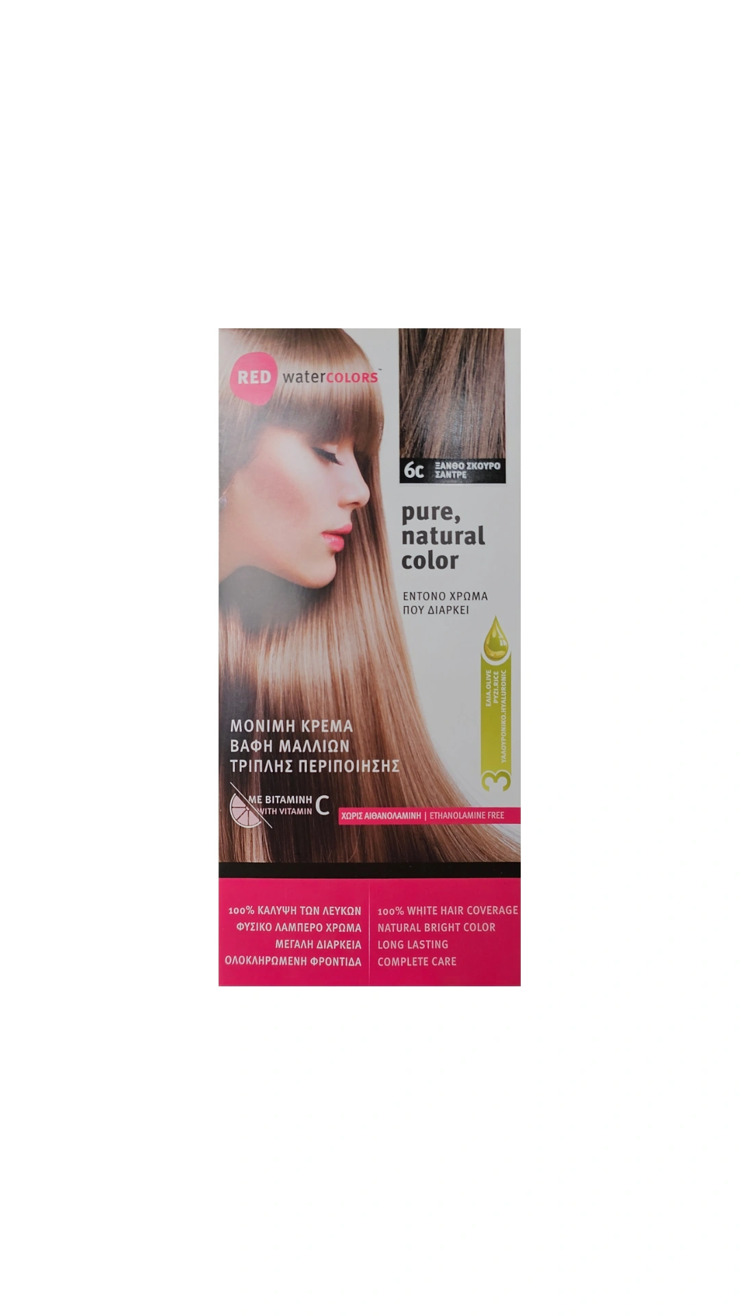Η Red Water COLORS έχει σχεδιαστεί για να εξασφαλίσει το καλύτερο χρωματικό αποτέλεσμα και ταυτόχρονη φροντίδα στα μαλλιά σας.Η Μόνιμη Κρέμα Βαφής Μαλλιών, περιποιείται τα μαλλιά καθώς τα βάφει, χαρίζοντας πλούσιο και έντονο χρώμα, καλύπτοντας 100% τα λευκά.Το Σαμπουάν Σταθεροποίησης Χρώματος επαναφέρει τη φυσική ισορροπία των μαλλιών και προστατεύει το χρώμα μέχρι την επόμενη βαφή.Η Ενυδατική Μάσκα Επανόρθωσης ενυδατώνει, θρέφει και ολοκληρώνει τη φροντίδα των μαλλιών αφήνοντάς τα μαλακά, υγιή και λαμπερά.