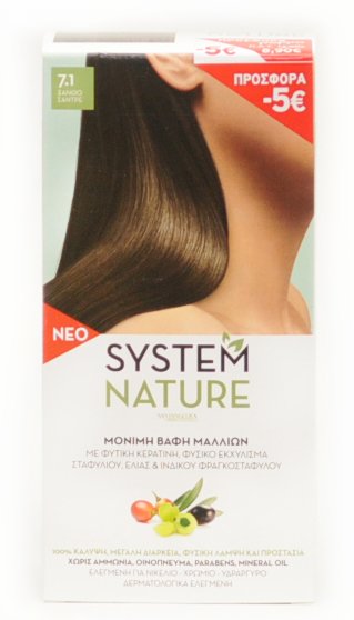 Η νέα μόνιμη βαφή μαλλιών SYSTEM NATURE, με Φυτική Κερατίνη, Φυσικό εκχύλισμα Σταφυλιού, Ελιάς και Ινδικού Φραγκοστάφυλου, χαρίζει 100% κάλυψη λευκών και γκρίζων μαλλιών, ομοιόμορφο χρώμα με μεγάλη διάρκεια, προστασία και φυσική λάμψη.