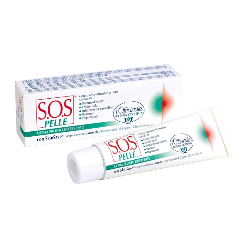 Η κρέμα S.O.S Pelle γρήγορα και αποτελεσματικά μειώνει τις κοκκινίλες, το αίσθημα καψίματος και τη φαγούρα που προκαλούνται από ηλιακά εγκαύματα, τσιμπήματα, αλλεργίες, ερεθισμούς από πάνες, χτυπήματα, εγκαύματα από φωτιά ξύρισμα και θεραπεία λέιζερ. Η κρέμα δρά χρησιμοποιώντας τις ιδιότητες του Skinsave συνδιάζοντας φυσικά ενεργά συστατικά από κάπαρη, ελιά και φραγκοσυκιά μαζί με άλλα φυσικά συστατικά όπως Lipex L Sens, Rhamnosoft και Betaine. -Χωρίς Parabens-Δερματολογικά Ελεγμένο -Παρασκευάζεται στην Ιταλία Κατάλληλο για ηλικίες άνω των 2 ετών